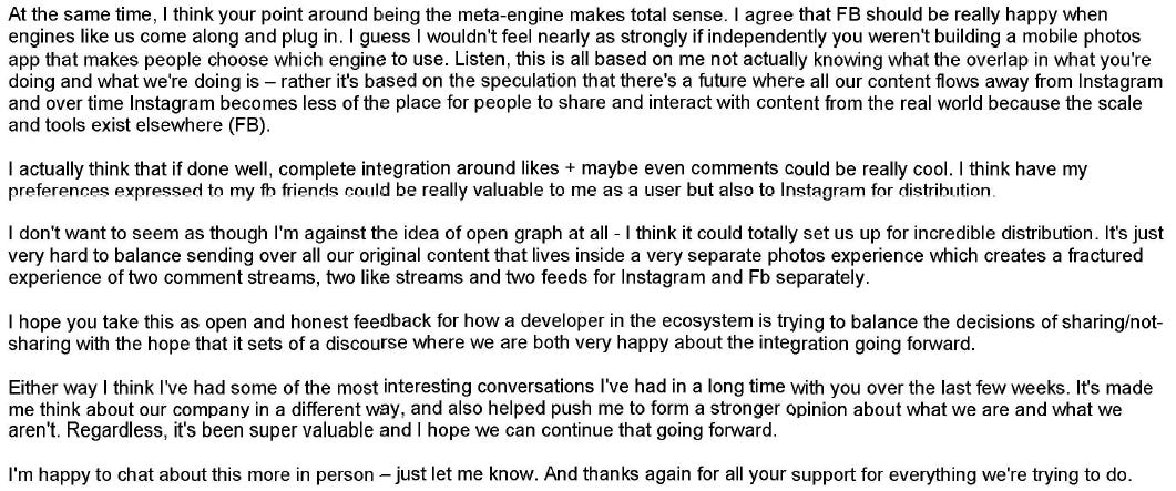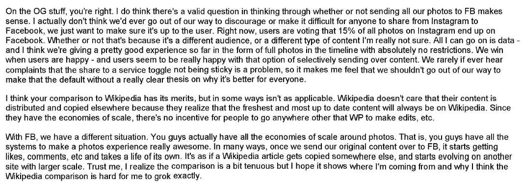 The two companies were collaborating on a project called Open Graph (OG). Remember, Instagram depended on Facebook access to allow users to cross post pics.
