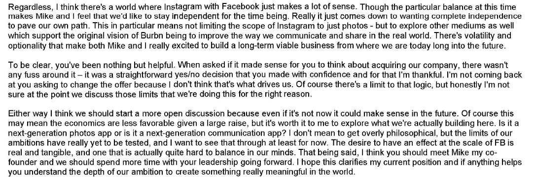 The emails provide a rare window into the minds of two smart people locking horns, and how coldly Zuck played his cards. It’s no surprise that the Instagram founders left Facebook abruptly a few years later- they were reportedly frustrated at Zuckerberg taking too much control.